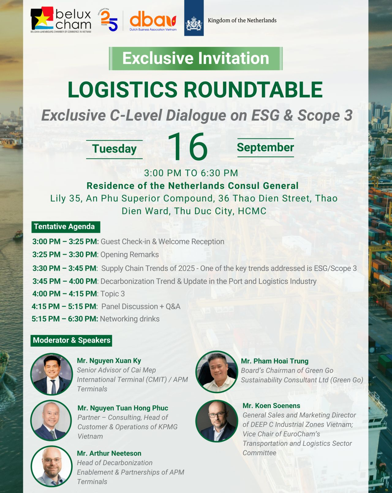 On 16 September 2025, BeLuxCham Vietnam and Dutch Business Association Vietnam DBAV 🇳🇱 will bring together a select group of C-level executives for keynote presentations, panel discussions, and networking at the Residence of the Netherlands Consul General in Ho Chi Minh City.