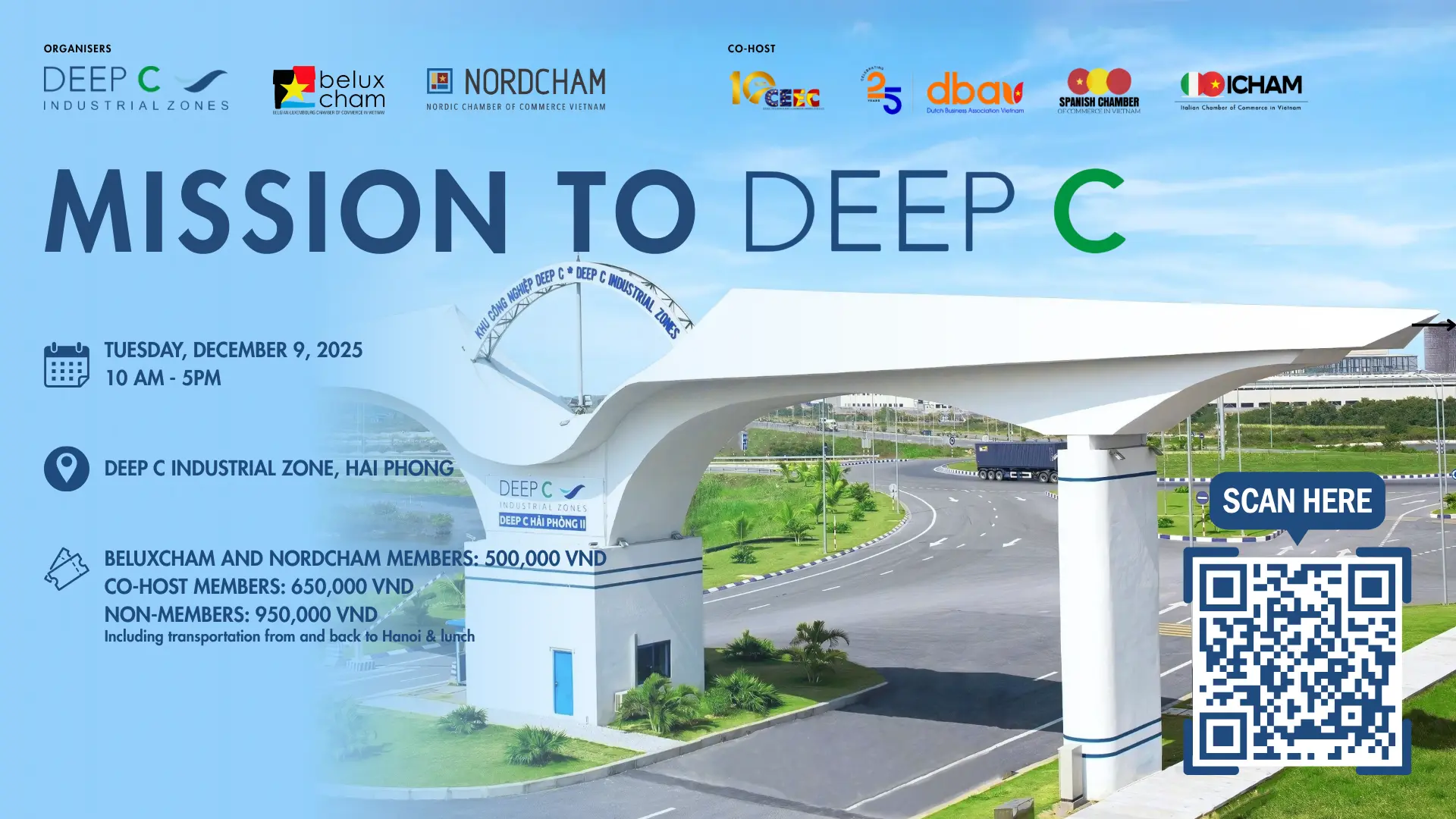 BeLuxCham Vietnam, in collaboration with NordCham and our Diamond Partner - DEEP C Industrial Zones Vietnam, is pleased to invite members to a full-day business mission in Hai Phong. The program will feature opening remarks from local authorities and Deep C leadership, highlighting Hai Phongβs strategic role as Vietnamβs next major economic hub and home to a new free trade economic zone.